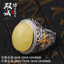 纯银925银戒指空托 13*18活口戒托镶嵌蜜蜡琥珀DIY戒指空托男