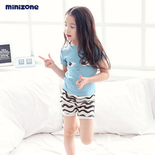 儿童夏装男童女童短袖T恤裤子minizone小魔怪童装夏款儿童套装