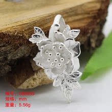 925纯银瓜子扣定制银夹扣牡丹花夹扣DIY镶嵌琥珀蜜蜡