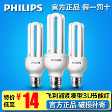 飞利浦节能灯泡3U 8W11W14W 紧凑型E27 E14 白光黄光三基色光源