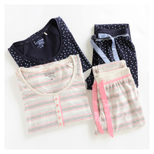 梅香雅品2017新款睡衣女春秋夏季条纹长袖套装圆领套头薄款家居服