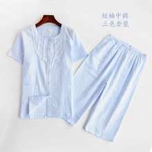 梅香雅品春季纯棉睡衣女长袖纱布套装开衫翻领全棉家居服夏款短袖