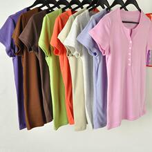 小衫女秋夏装新款 韩版纯棉色圆领长袖T恤纽扣打底衫大码