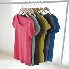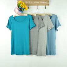 打底小衫女春夏装新款韩版纯色大圆领棉莱卡短袖T恤大码