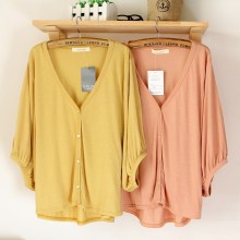 休闲小衫女秋装新款多色V领中袖纽扣开衫宽松打底防晒衫1