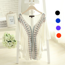 包邮!欧美新款春夏女装小衫女V领短袖T恤t-shirts打底衫大码111