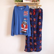 大码女装男装长袖家居服卡通套装打底睡衣秋冬蓝绿情侣装1