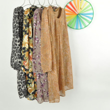 大码女装 春秋装新款 宽松雪纺裙印花长袖连衣裙