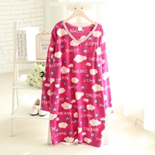 包邮!大码女装睡裙长袖摇粒绒睡裙睡衣女裙孕妇装家居服1