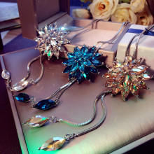 韩版百搭衣服装饰挂饰长款水晶项链天山雪莲花朵 女 配饰毛衣链