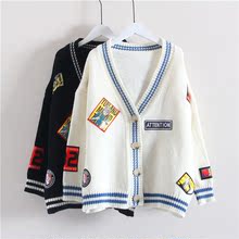 贴布毛衣女开衫2017新款春装韩版宽松百搭学生上衣针织衫外套短款