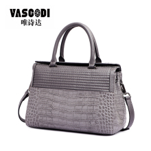 2017新款潮真皮鳄鱼纹波士顿包手提包百搭斜挎女包休闲牛皮单肩包