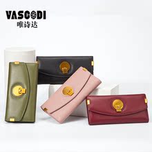 VASCODI唯诗达真皮女士钱夹头层牛皮搭扣大容量手抓包长款钱包女