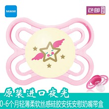 MAM6个月以上硅胶轻薄柔软夜光扁平透气安抚安睡安慰奶嘴带消毒盒