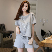 2017东大门夏季新品大码休闲两件套字母图章印花上衣短裤运动套装