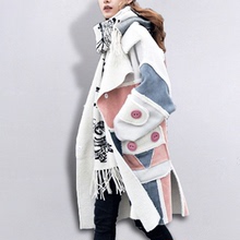 2017春装新款欧美风宽松大码羊羔毛复合过膝长款毛呢外套女呢大衣