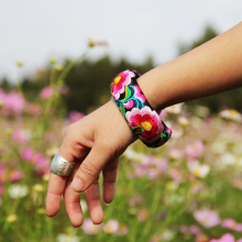 新款女饰品手镯 民族风文艺复古绚丽绣花手镯活口手镯手腕女饰品