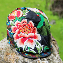 民族风帽子 云饰图腾原创正品牡丹凤凰机绣绣花缎面鸭舌帽绣花帽