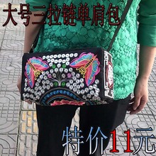 云南民族风刺绣包包女士绣花单肩斜跨包三拉链大号钱包双面刺绣包