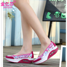 正品2016春夏新款气垫碎花帆布透气运动风休闲浅口单鞋摇摇鞋女鞋