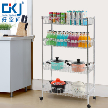 好空间厨房置物架层架水果蔬菜架子网篮收纳架4层不锈钢色整理架