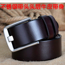 男士皮带真皮不锈钢针扣休闲腰带纯头层牛皮简约商务裤带青中年款