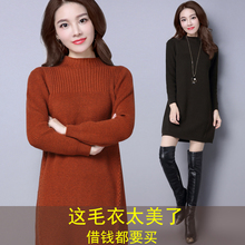毛衣女秋冬中长款套头大码女装加肥加大针织衫胖mm打底衫女连衣裙
