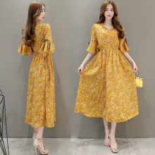 雪纺连衣裙2017韩版新款裙子碎花中长款印花雪纺连衣裙JHC1062075