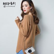 2017春装新款韩版毛衣大码女装针织衫女长袖宽松春秋中长款羊毛衫
