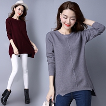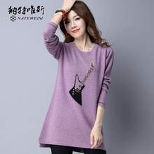 2016韩版新款毛衣女秋冬中长款打底衫大码女装胖MM宽松长袖针织衫