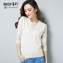 2017春装新款V领套头针织衫纯色长袖打底衫韩版女装大码宽松上衣