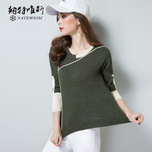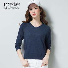 2017韩版时尚女装新款大码套头针织衫长袖打底衫针织V领女上衣春
