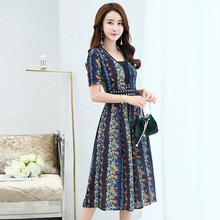 夏季新款2017韩版女装裙子气质显瘦收腰连衣裙雪纺印花短袖连衣裙
