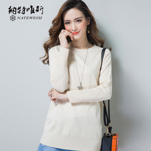 2017春装宽松大码女装针织衫长袖圆领羊毛衫中长款套头毛衣打底衫