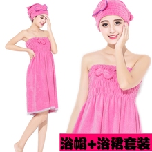 干发帽浴裙套装抹胸珊瑚绒纯棉百变可穿浴巾成人女加大加厚美容院