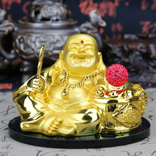 创意汽车摆件太阳能镀金旋转佛车内饰品弥勒佛水晶香水座保平安佛