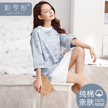 彩亨彤睡衣女春夏季纯棉可爱女士宽松睡裙夏天韩版家居服套装女