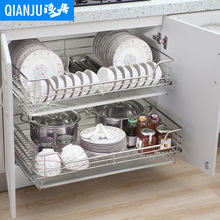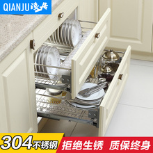 浅居正品 厨房拉篮不锈钢双层碗碟架橱柜拉篮多功能碗柜抽屉碗架