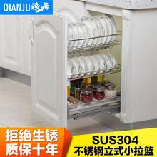 浅居 拉篮304不锈钢厨房橱柜拉篮抽屉式碗架调味料架碗碟碗篮阻尼