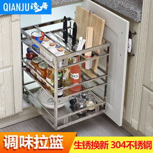 浅居厨房拉篮304不锈钢调味篮拉篮厨房橱柜调味架拉篮配阻尼导轨