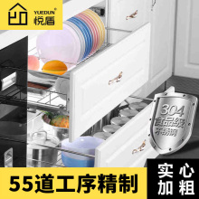 悦盾 厨房橱柜拉篮304不锈钢双层抽屉碗碟阻尼碗架调味篮厨柜碗篮