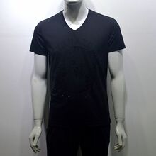 正品特鲨地TRUAZDIA人气夏季V领短袖衫时尚烫钻配植绒印花袖T恤男