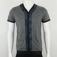 特鲨地TRUAZDIA夏季原创潮门筒领短袖T恤时尚异国风情蜡染拼料男T