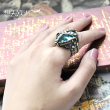 包邮日韩国饰品复古宫廷蓝色宝石水晶韩版弹力夸张食指大戒指环女