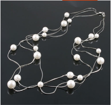 项链女日韩国饰品白色复古多层双层珍珠长款时尚百搭毛衣链满包邮