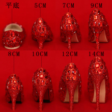 红色超高跟防水台新娘鞋圆头细跟水晶鞋浅口水钻婚鞋女单鞋敬酒鞋