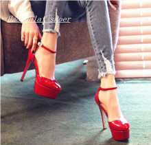 14CM超高跟鞋性感单鞋欧美春夏季新款细跟防水台鱼嘴镂空扣带女鞋