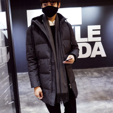 羽绒服男中长款韩版修身连帽羽绒外套男士纯色大衣