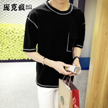 青年夏季特宽松七分袖半袖衫T恤加肥加大码男生纯色上衣潮流衣服