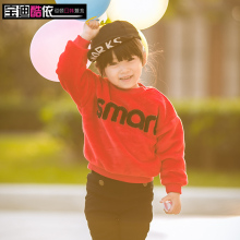 女童加厚加绒套头卫衣 2015女宝宝加厚羊羔绒大红色绒衫夹克上衣